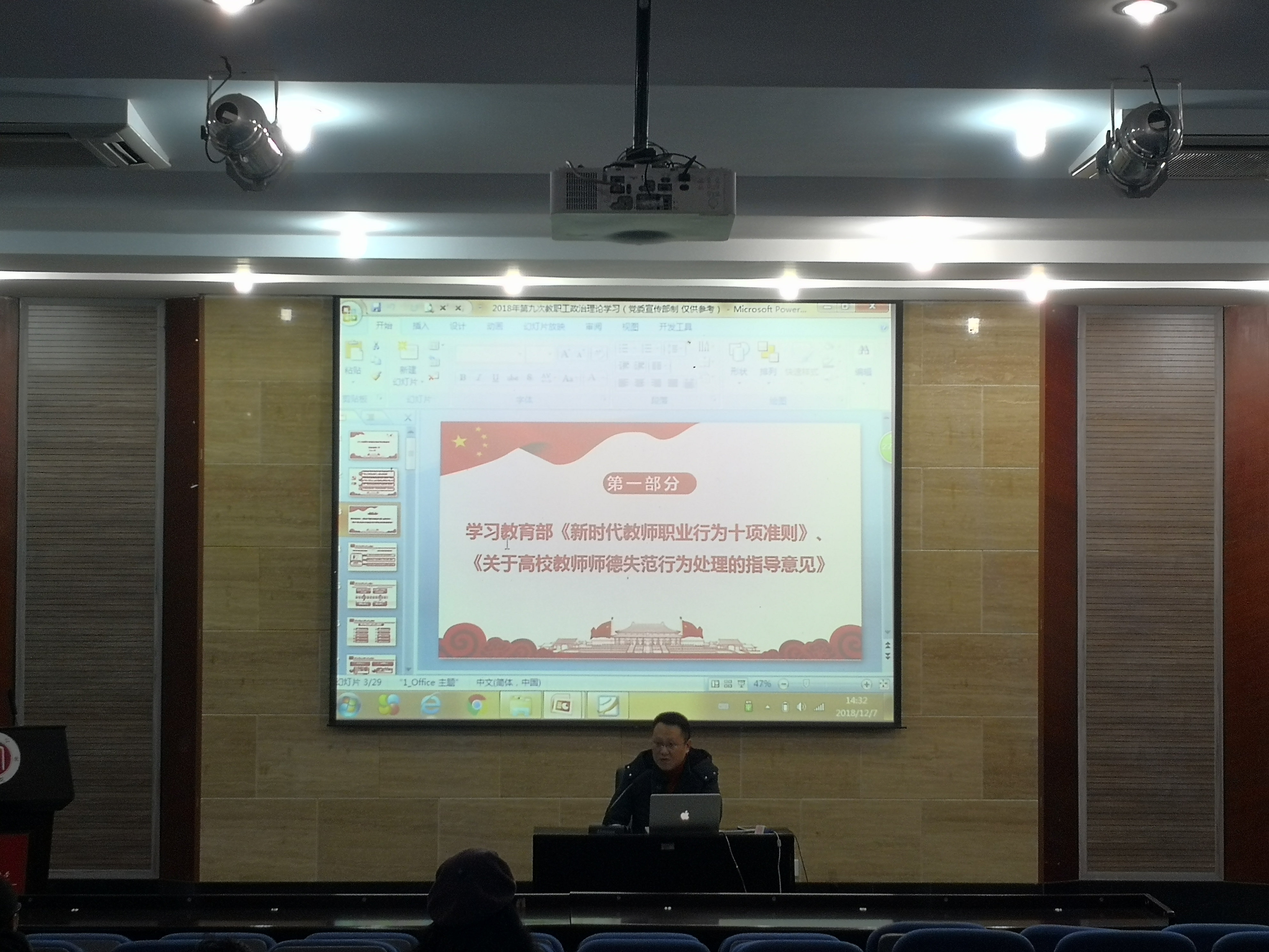 12月7日下午2点30,best365英国在线体育官网在雨僧楼101报告厅召开了本年度第九次政治理论学习。会议由best365英国在线体育官网党委副书记邓洪波主持,全体教职员工参加了会议。