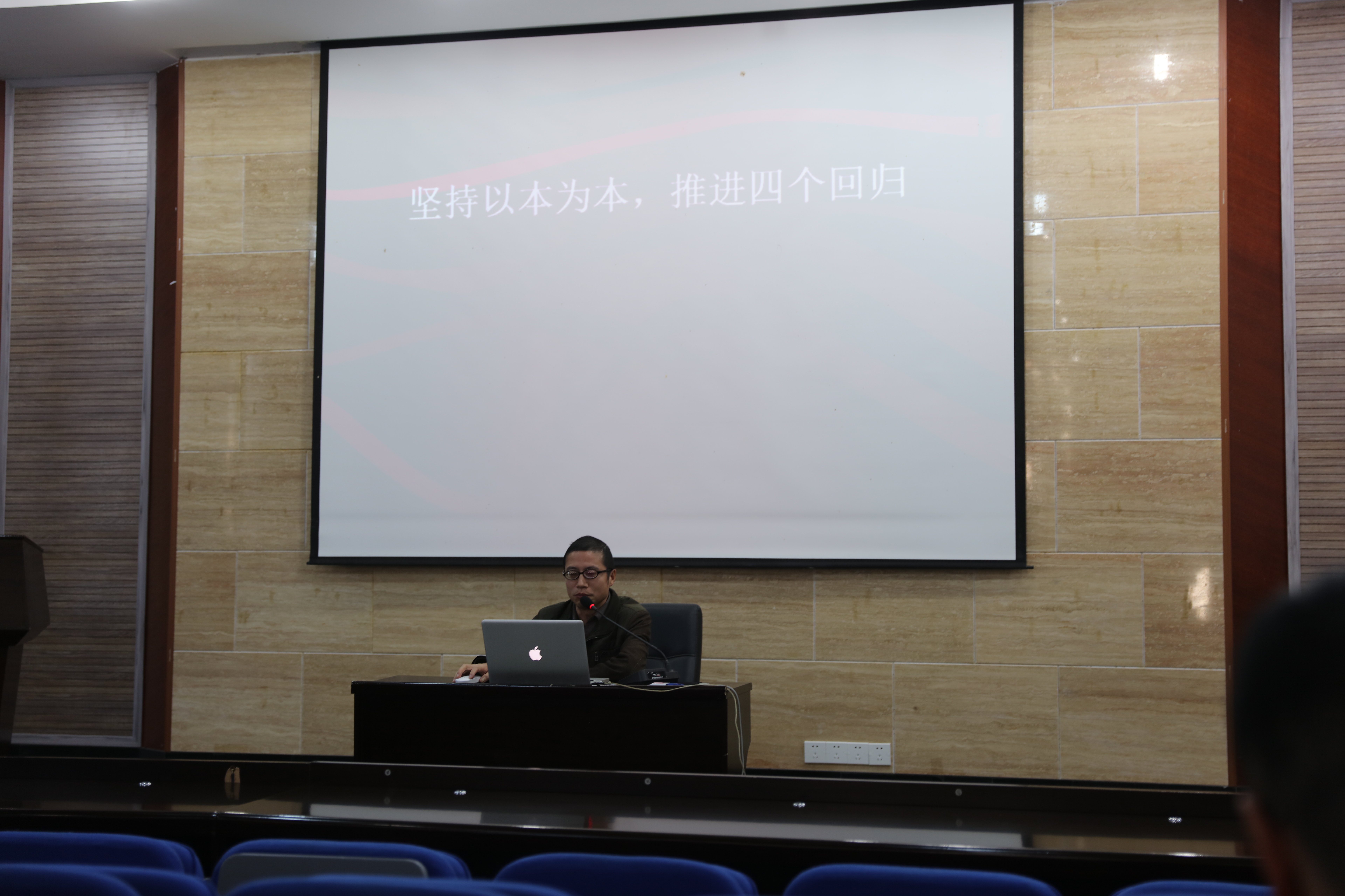 随后,张春泉副院长传达了学校2018年本科教育工作会精神。张院长指出,学院要办一流的本科教育就要坚持“以本为本、四个回归”。高等院校的根本任务在于立德树人,本科教育处于核心地位,办好本科教育要加强人才培养体系建设,将本科教育各个环节进行实质性深度化的融合,实现全员、全过程、全方位育人。