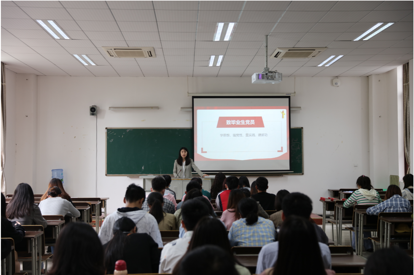 陈玥副书记围绕“持续学习强党性”“走好廉洁人生路”“筑牢防线,守住‘五关’”讲授专题党课。她指出,党性是党员立身、立业、立言、立德的基石,需要强化理论武装、时刻自重自省、涵养敬畏之心。她结合相关条例和实际案例,从廉洁治学、廉洁从业、廉洁齐家三个层面强调了廉洁的重要性。从守住政治关、守住权力关、守住交往关、守住生活关、守住亲情关五个方面介绍了如何做到廉洁自律。陈玥副书记强调,对于即将迈入工作岗位的党员毕业生来说,要用党在百年奋斗中形成的伟大精神滋养自己、激励自己,自觉培养高尚道德情操。最后,她以学习贯彻习近平新时代中国特色社会主义思想主题教育的总要求“学思想、强党性、重实践、建新功”寄语毕业生党员。